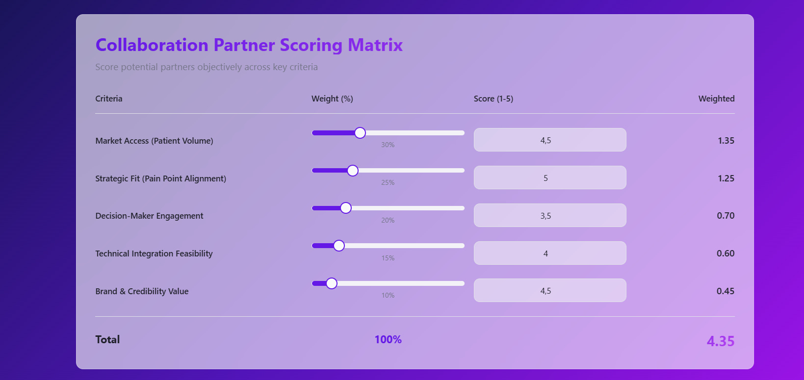 2) Score before you chase (Collaboration Partner Scoring Matrix)